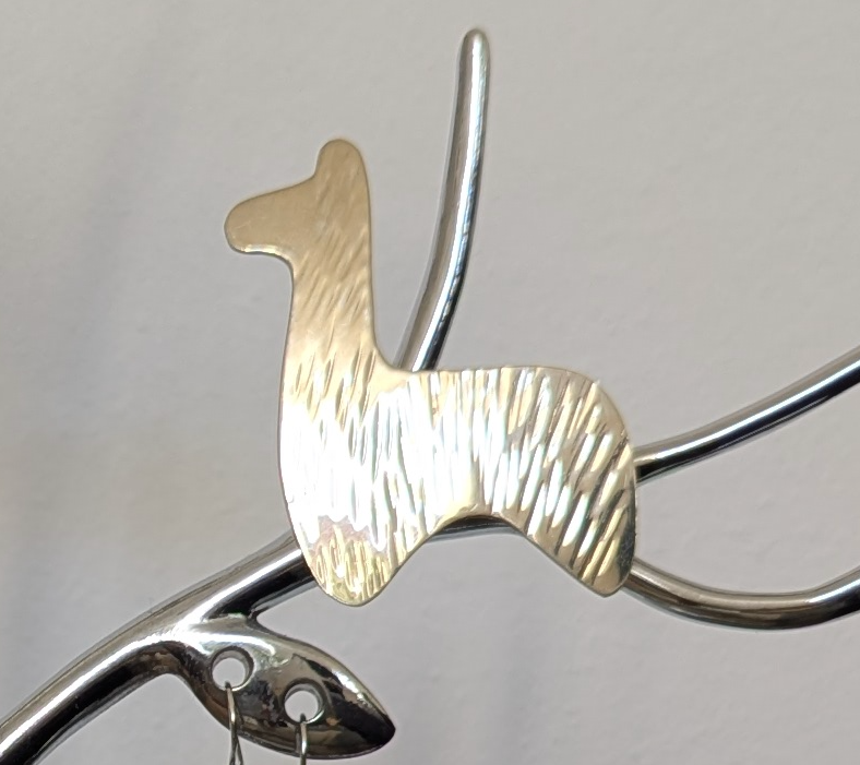 Add a touch of charm and sophistication to your look with this handcrafted llama-inspired brooch. Beautifully shaped with a sleek, modern silhouette, the design features a shimmering gold-textured finish that catches the light with every movement.